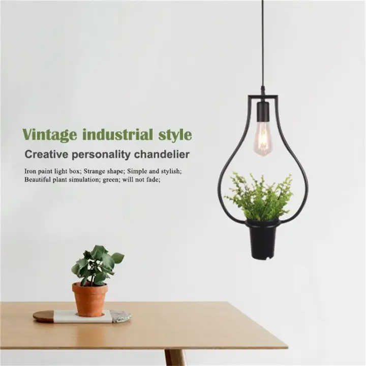 Black Vases Green Plants Hanging Lamps Retro Industrial Style Creative Personality Chandelier Clothing Shop Cafe Restaurant Light Nordic Iron Flower