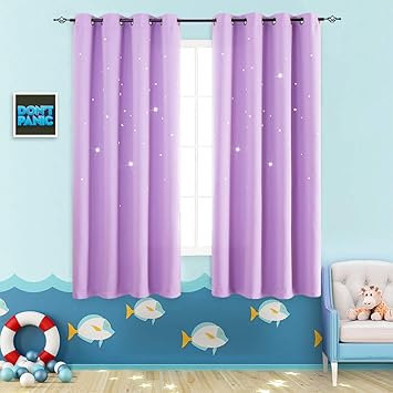 Nursery Blackout Curtains Kids Room Darkenings For Bedroom 63 Inches Long Twinkle Star Laser Lilac Draperies For Living Room Grommet Top Thermal